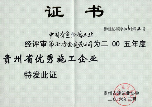 贵州省优秀施工企业2005