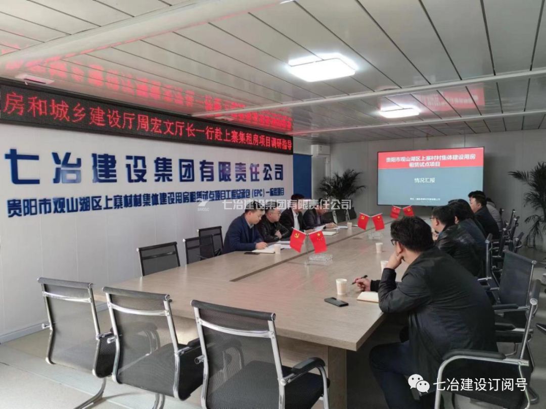 2023年3月23日,贵州省住房和城乡建设厅党组书记、厅长周宏文一行到七冶集团承建的贵阳市观山湖区上寨村村集体建设用房租赁试点项目调研,贵阳市住建局副局长赖正林,观山湖区委常委、区政府常务副区长孙猛,七冶总承包事业部总经理钱坤、副总经理刘斌等陪同调研。
