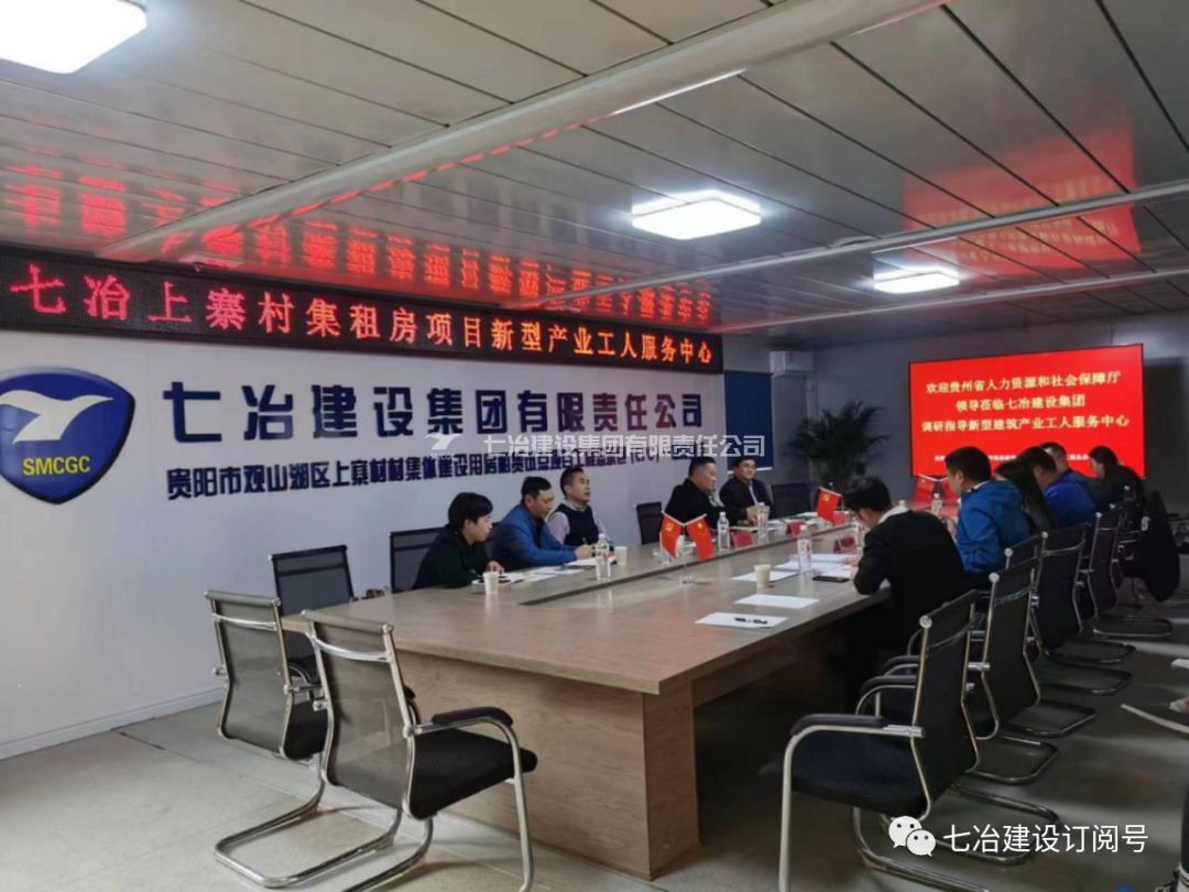 近日,贵州省人力资源和社会保障厅副厅长方胜一行来到贵阳市观山湖区上寨村村集体建设用房租赁试点项目新型建筑产业工人服务中心调研指导。省人社厅劳动监察局副局长张启军,省劳动监察局局长谢光辉、副局长林刚参加调研座谈。