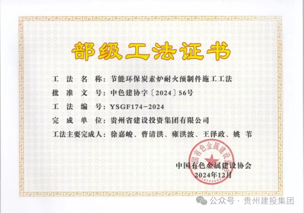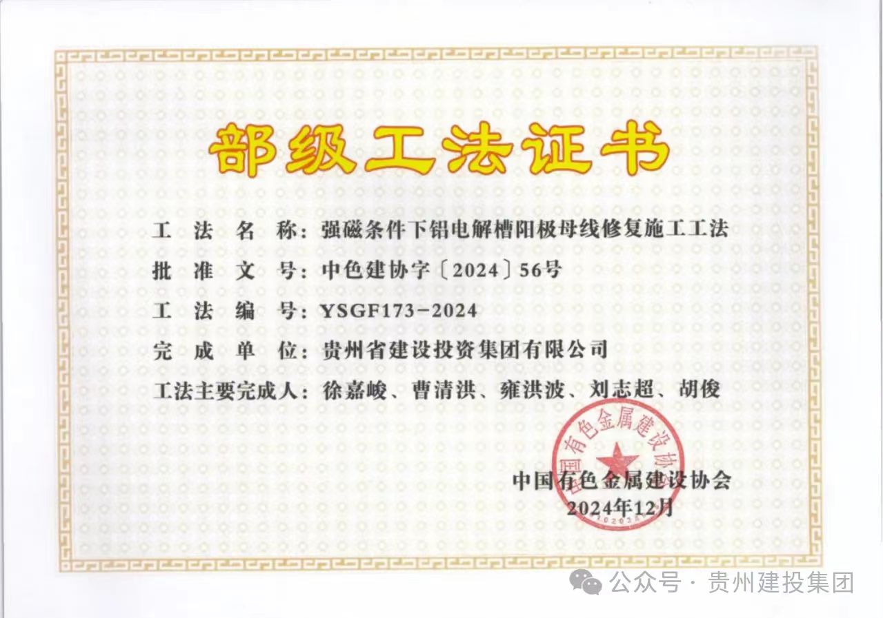 近日,中国有色金属建设协会公布2024年度部级施工工法名单,此次获评的部级工法创新点突出、技术先进、效益显著、经济适用。贵州建投集团申报的《强磁条件下铝电解槽阳极母线修复施工工法》和《节能环保炭素炉耐火预制件施工工法》榜上有名,不仅为集团技术创新再添新成果,同时标志着集团在技术创新、技术管理等方面实现新突破。