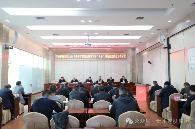2025年1月24日下午,贵州建投集团召开2024年四季度安委会暨春节和“两会”期间安全防范工作会议,集团党委书记、董事长钟汰甬,集团党委副书记、副董事长、总经理毛家荣出席并讲话,集团在家领导班子成员出席会议,集团安委会成员、安委会办公室成员参加会议,集团总工程师汪洋主持会议。