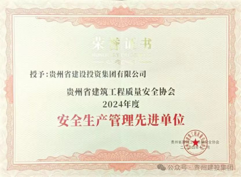 - 贵州建投集团2024年度安全质量喜获佳绩