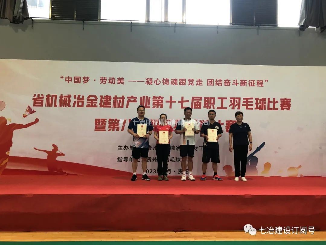6月20日至21日,贵州省机械冶金建材产业“中国梦·劳动美—凝心铸魂跟党走 团结奋斗新征程”第十七届职工羽毛球暨第八届职工乒乓球比赛在贵阳市六广门体育馆开赛。经过激烈角逐,七冶蝉联羽毛球“团体赛第一名”,并获得羽毛球“干部组双打第一名和第三名”的好成绩。