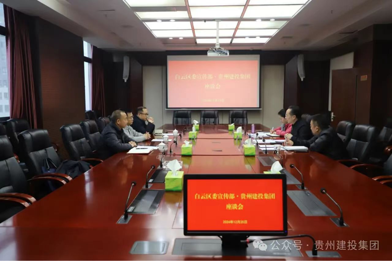 12月25日下午,贵州建投集团与贵阳市白云区宣传工作座谈会在贵州建投大厦17楼会议室举行。贵阳市白云区委常委、区委宣传部部长李泽君,区委宣传部常务副部长王明光,集团党委副书记、工会主席蒙忠等出席座谈会。