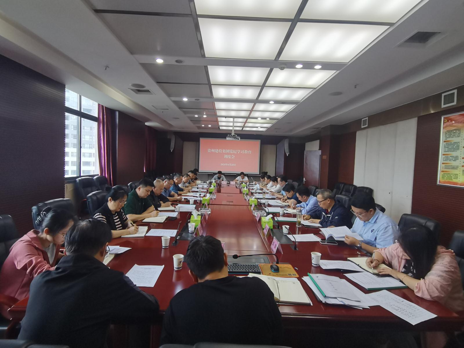 6月25日,贵州建投集团召开党纪学习教育调度会,深入学习贯彻习近平总书记关于全面加强党的纪律建设的重要论述,传达学习省委、省国资委有关文件及会议精神,听取集团下属党组织党纪学习教育情况汇报,研究部署下步重点工作。集团党委副书记、工会主席蒙忠主持会议并讲话。