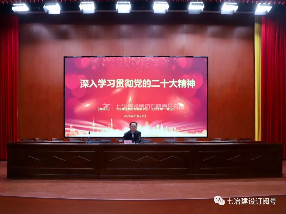 11月21日下午,七冶建设集团党委副书记、工会主席蒙忠在七冶大厦21楼第一会议室集中宣讲党的二十大精神。集团所属在筑子分公司组织人事部门负责人、工会负责人、团员青年、统战对象代表等到场聆听宣讲。