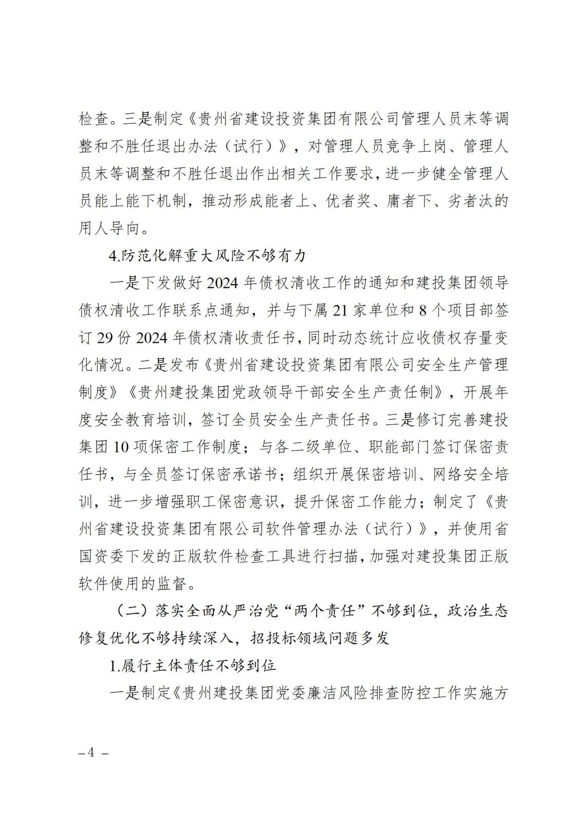 贵州建投集团党委关于巡视集中整改进展情况的通报